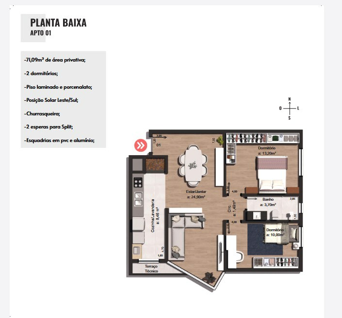 Descrição › Apartamento em construção, localizado no Centro de Farroupilha, com 2 dormitórios, sala de estar e jantar em conceito aberto com a cozinha, banheiro social, área de serviço, churrasqueira e 1 box de garagem. Este apartamento é ideal para quem busca conforto e praticidade. Com uma área total de 96.27m² e área privativa de 71.90m², o imóvel conta com diversas comodidades, 2 elevadores, salão de festas, espaço pet, espera para água quente, 2 esperas para split, medidores individuais e posição solar Leste/Sul.