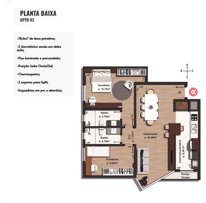 Área Privativa › 78,60m²