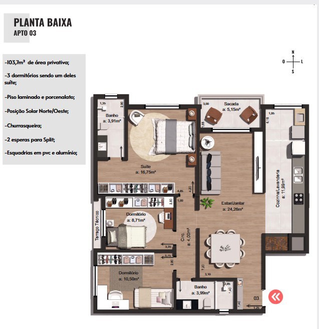 Área Privativa › 103,70m²