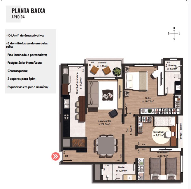 Área Privativa › 104,43m²